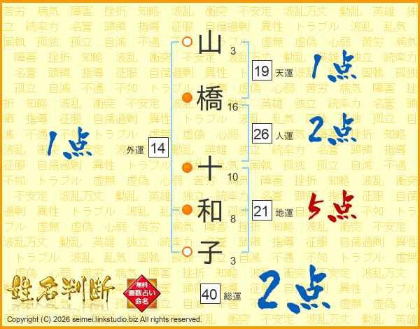 山橋十和子さんの総運は40画の2点!