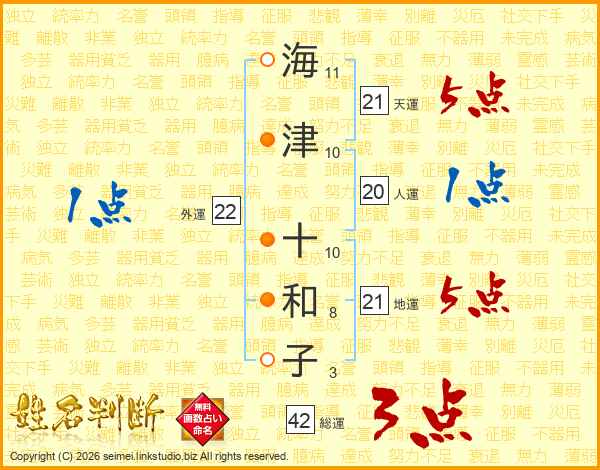 海(11画)津(10画) 十(10画)和(8画)子(3画)