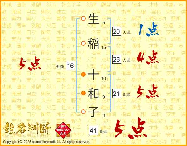 生(5画)稲(15画) 十(10画)和(8画)子(3画)