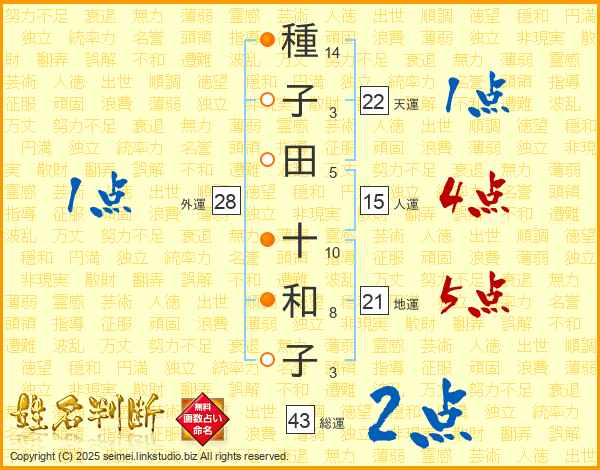 種(14画)子(3画)田(5画) 十(10画)和(8画)子(3画)