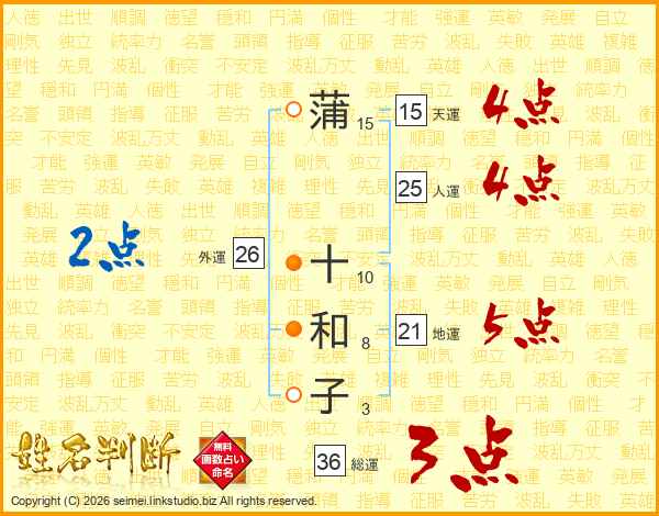 蒲十和子さんの総運は36画の3点!