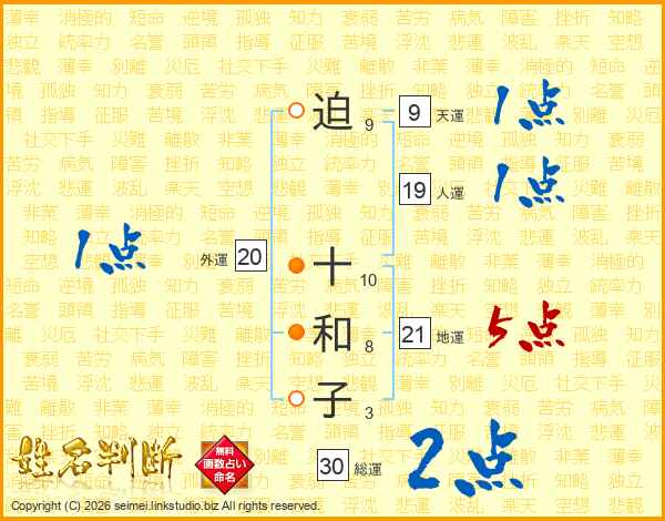 迫十和子さんの総運は30画の2点!