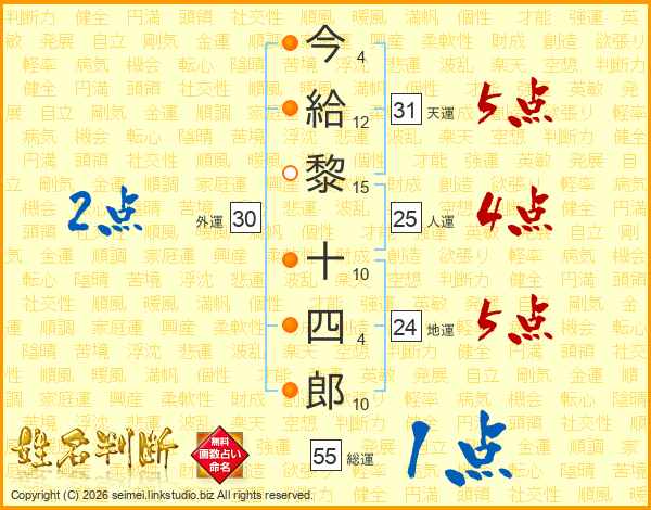 今給黎十四郎さんの総運は55画の1点!