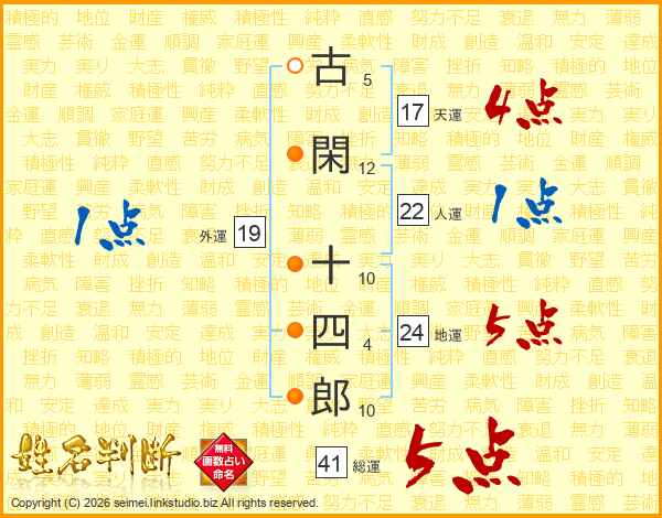 古閑十四郎さんの総運は41画の5点!