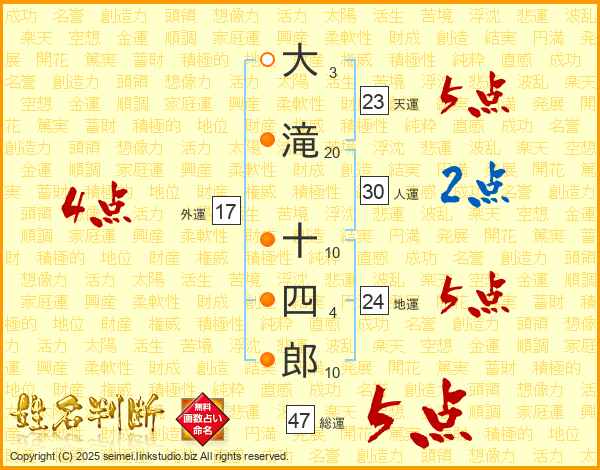 大滝十四郎さんの総運は47画の5点!