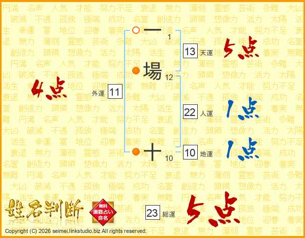 一場十さんの総運は23画の5点!