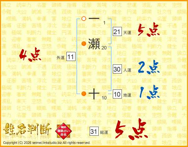 一瀬十さんの天運は21画の5点!
