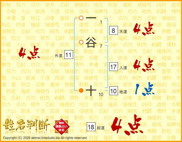 一谷十さんの総運は18画の4点!
