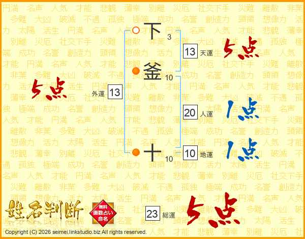 下釜十さんの総運は23画の5点!