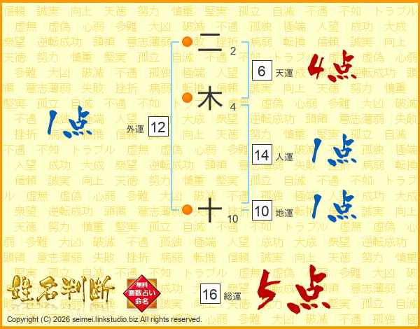 二木十さんの人運は14画の1点!