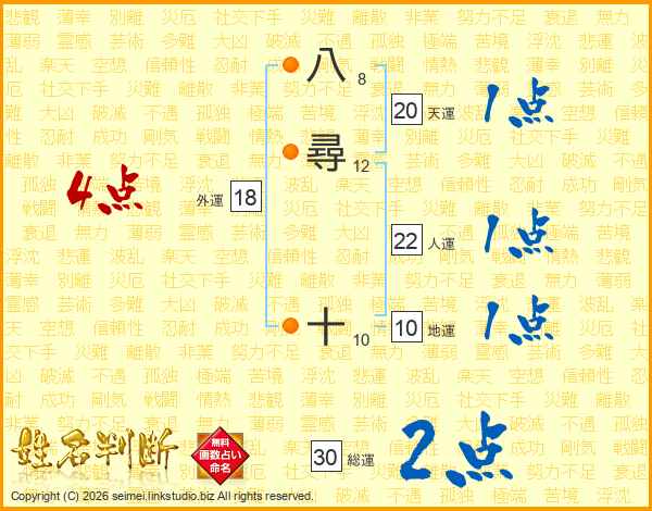 八尋十さんの総運は30画の2点!
