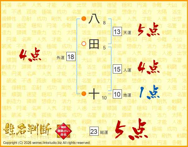 八田十さんの総運は23画の5点!