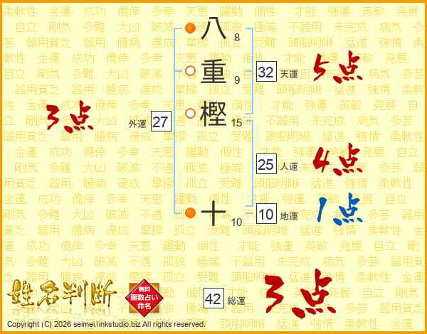 八重樫十さんの総運は42画の3点!