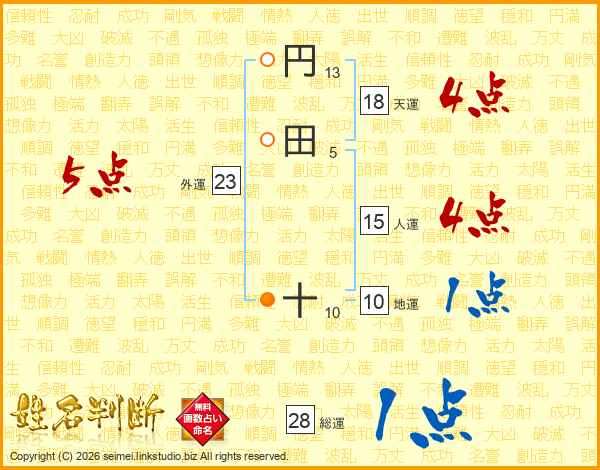 円田十さんの天運は18画の4点!