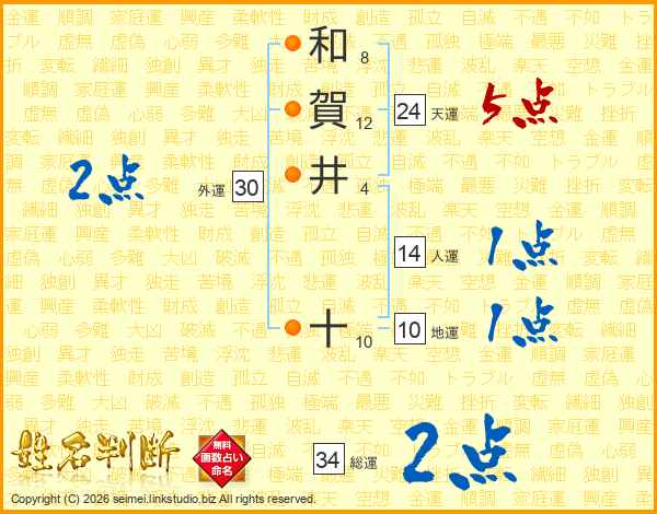 和賀井十さんの人運は14画の1点!