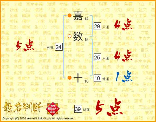 嘉数十さんの総運は39画の5点!
