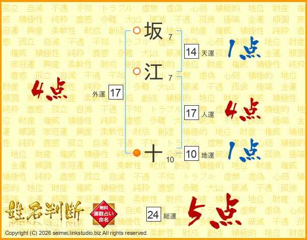坂江十さんの総運は24画の5点!