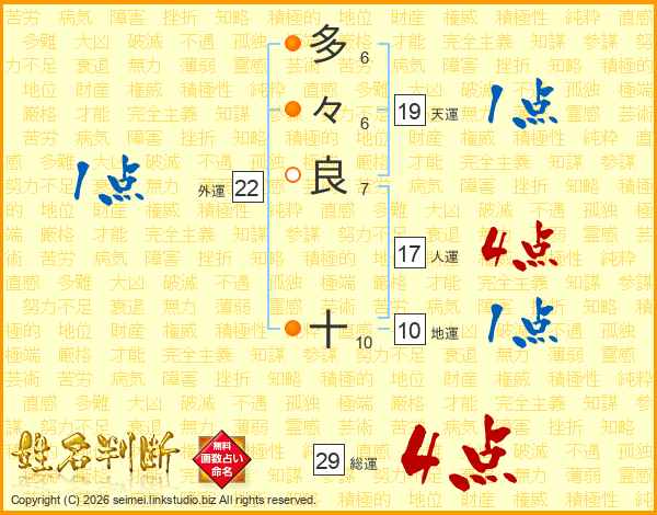 多々良十さんの総運は29画の4点!
