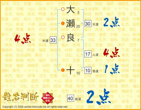 大瀬良十さんの外運は33画の4点!