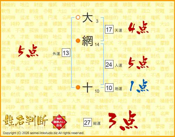 大網十さんの天運は17画の4点!