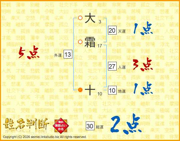 大霜十さんの総運は30画の2点!