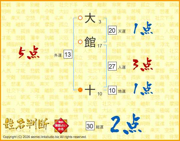大館十さんの総運は30画の2点!