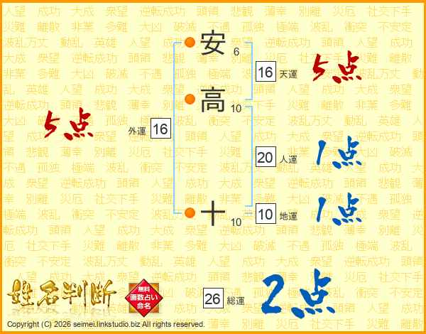 安高十さんの総運は26画の2点!
