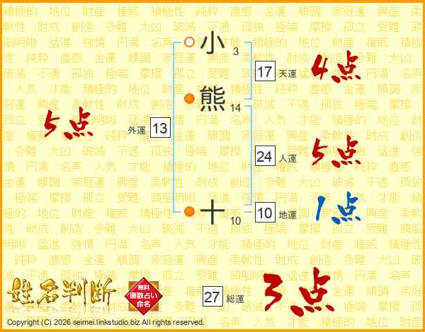 小熊十さんの総運は27画の3点!