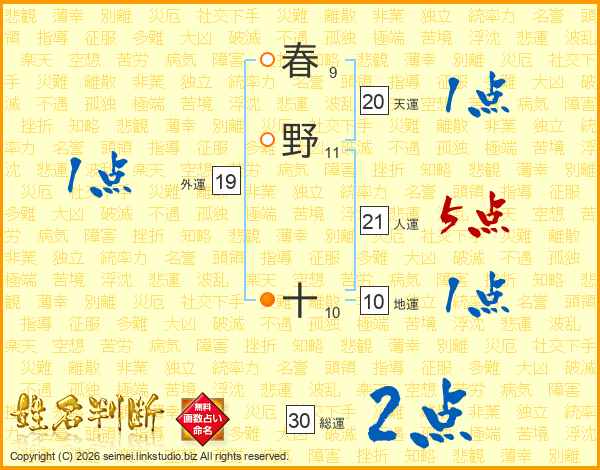 春野十さんの天運は20画の1点!