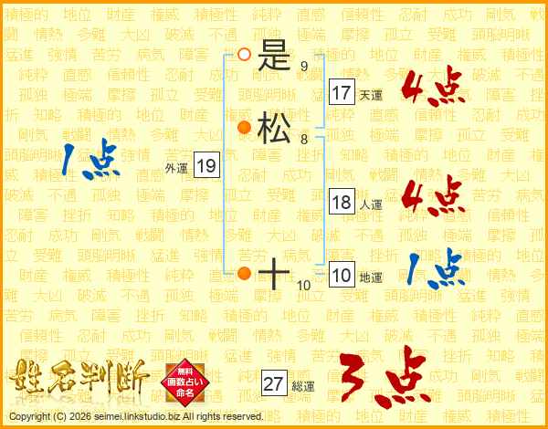 是松十さんの天運は17画の4点!