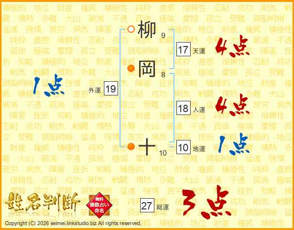 柳岡十さんの総運は27画の3点!