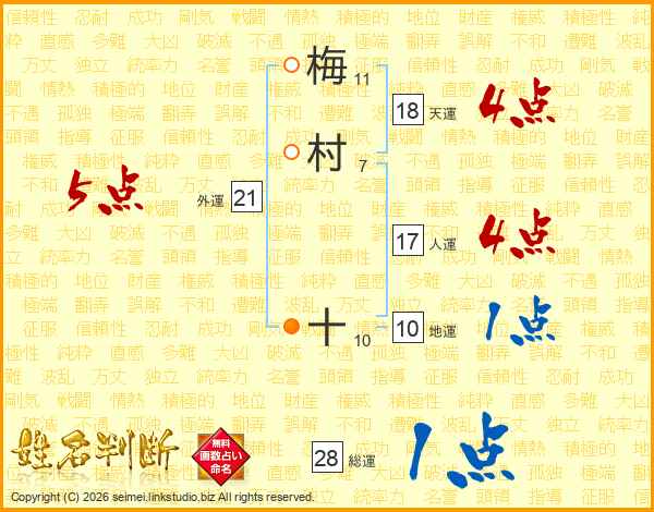 梅村十さんの総運は28画の1点!