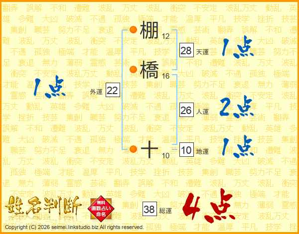 棚橋十さんの総運は38画の4点!