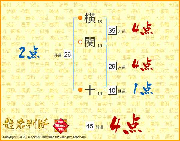 横関十さんの総運は45画の4点!