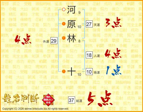 河原林十さんの総運は37画の5点!