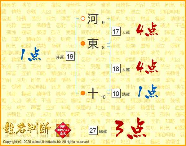 河東十さんの天運は17画の4点!