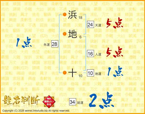 浜地十さんの総運は34画の2点!