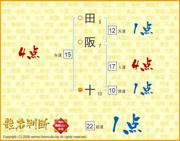 田阪十さんの総運は22画の1点!