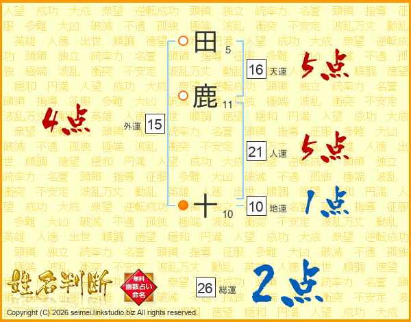 田鹿十さんの総運は26画の2点!