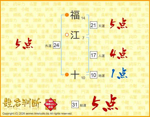 福江十さんの総運は31画の5点!
