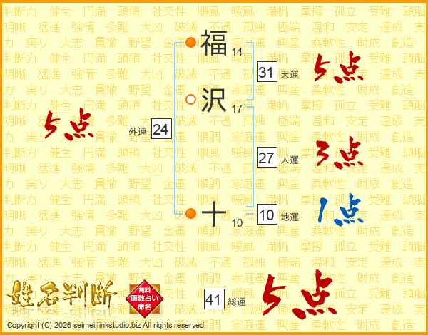 福沢十さんの総運は41画の5点!