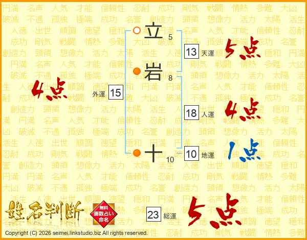 立岩十さんの総運は23画の5点!