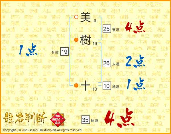 美樹十さんの総運は35画の4点!
