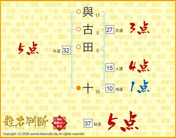 與古田十さんの総運は37画の5点!