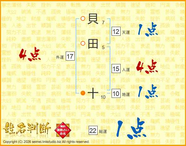 貝田十さんの総運は22画の1点!