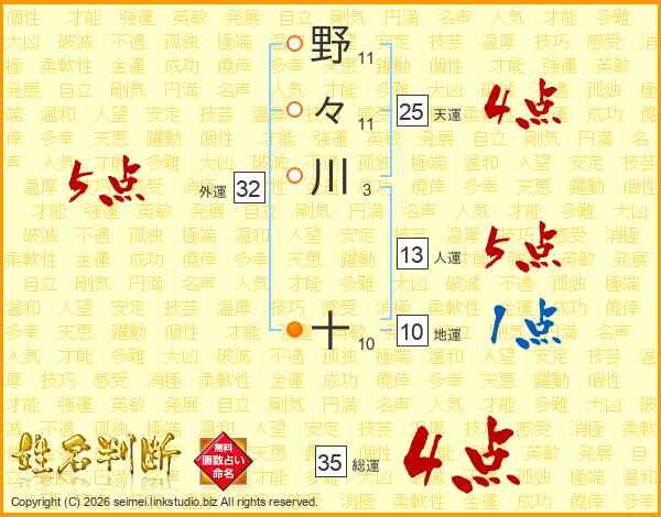 野々川十さんの総運は35画の4点!