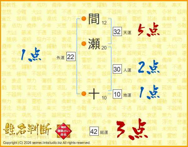 間瀬十さんの天運は32画の5点!