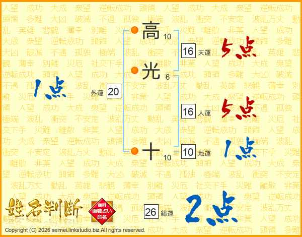 高光十さんの総運は26画の2点!