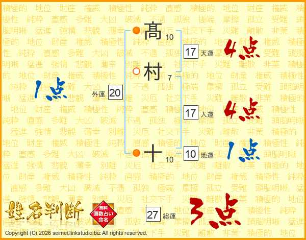 髙村十さんの天運は17画の4点!