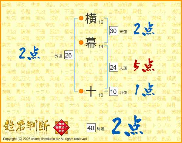 横幕十さんの天運は30画の2点!